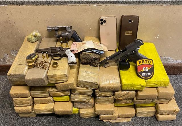 PM apreende moto roubada, armas e drogas