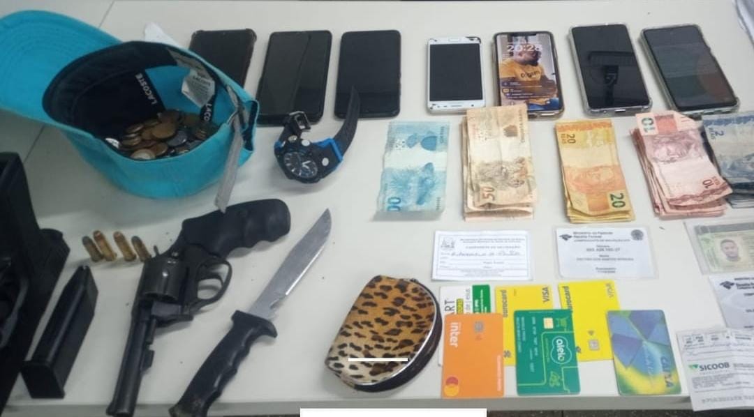 Os PMs recuperaram sete celulares, relógios, folha de cheque, cartões bancários, R$ 1,2 mil, entre outros itens. Nenhum dos bens pertencia ao trio.