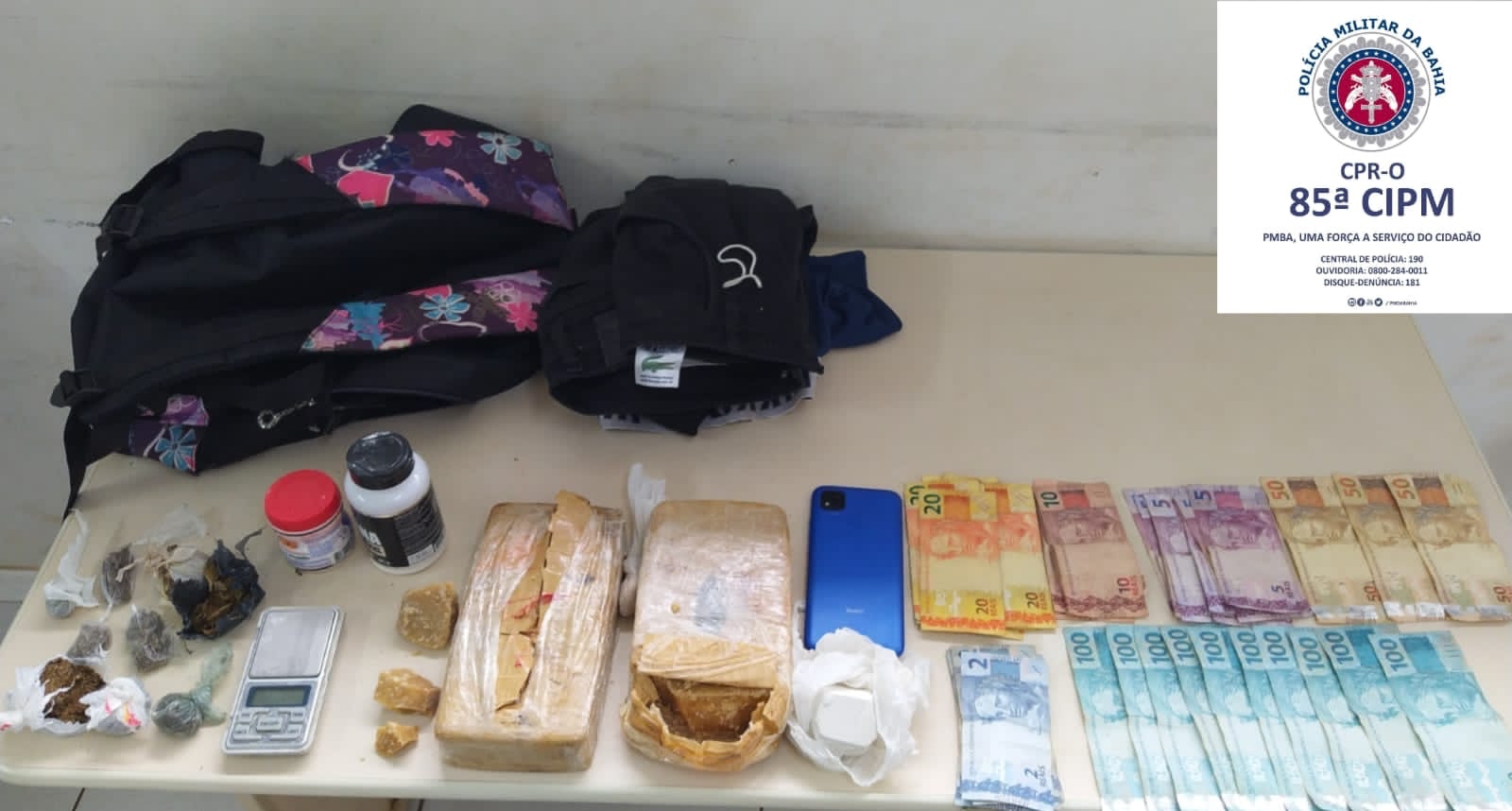 Conforme o subcomandante da unidade, capitão Leonardo Teles, o homem abordado era o motorista do aplicativo e disse não saber que estava transportando dois tabletes de crack, trouxas de maconha, uma balança e R$ 1,5 mil.