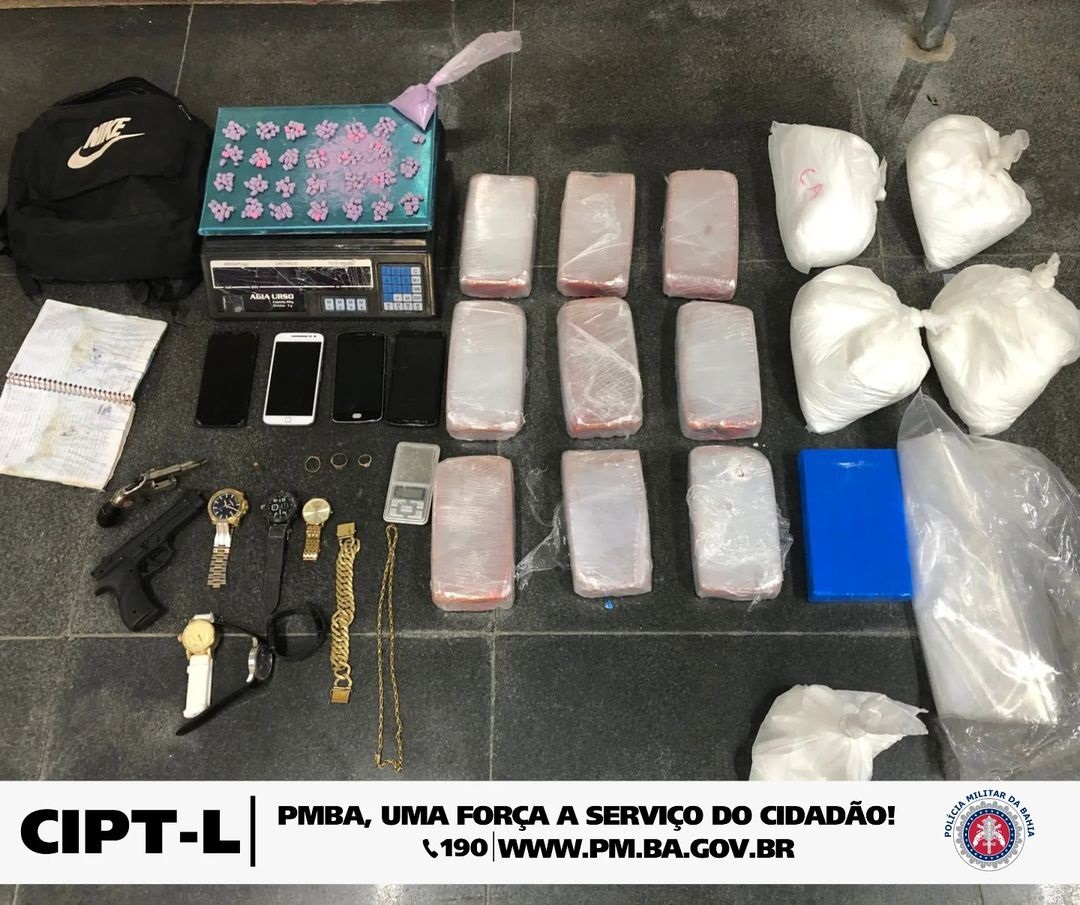 Minutos depois, outro traficante foi localizado. Ele estava com 10 tabletes de crack, cocaína, quatro quilos da mesma droga em pó, 263 porções de ecstasy, porções de cocaína menores, um revólver, calibre 22, duas balanças, cartuchos e anotações sobre o tráfico de entorpecentes.