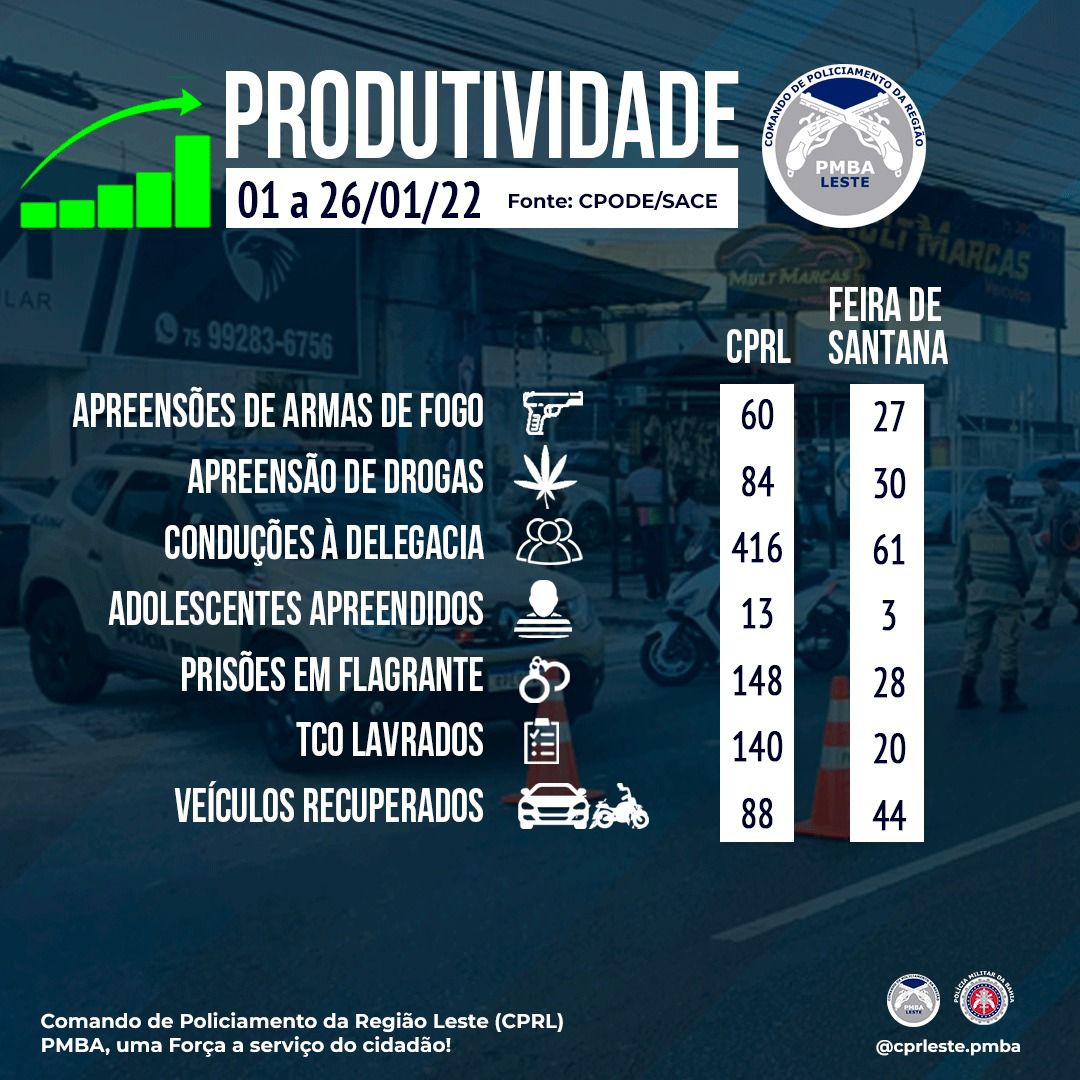 O Comando de Policiamento da Região Leste teve sua principal contribuição com a Operação Ostensividade nos Grandes Corredores Urbanos de Feira de Santana. A operação intensificou o policiamento preventivo em locais de grande circulação, com vistas à promoção da segurança e redução do Crime Violento Letal Intencional (CVLI) e do Crime Violento contra o Patrimônio (CVP), através das Unidades Operacionais subordinadas ao CPRL.