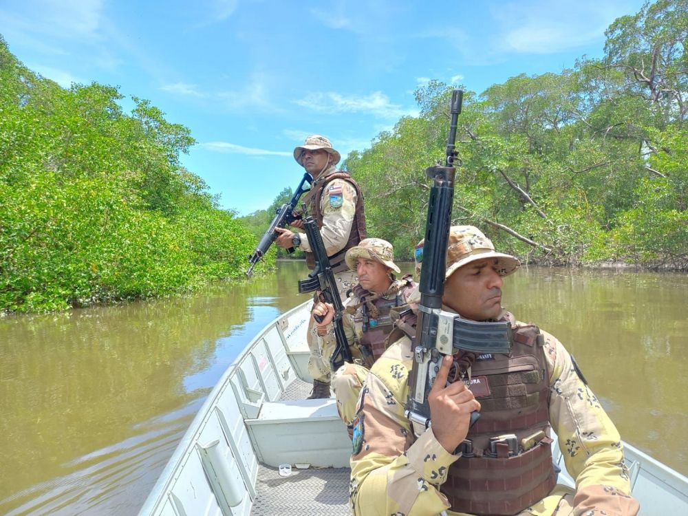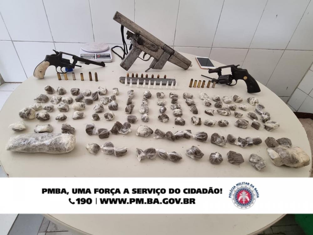Instantes depois, outra dupla foi identificada pelas equipes, sendo um dos homens preso em flagrante com um revólver calibre 38. Além das armas, munições para calibre 9 milímetros, dez pinos de cocaína, 536 gramas de maconha e dez celulares.