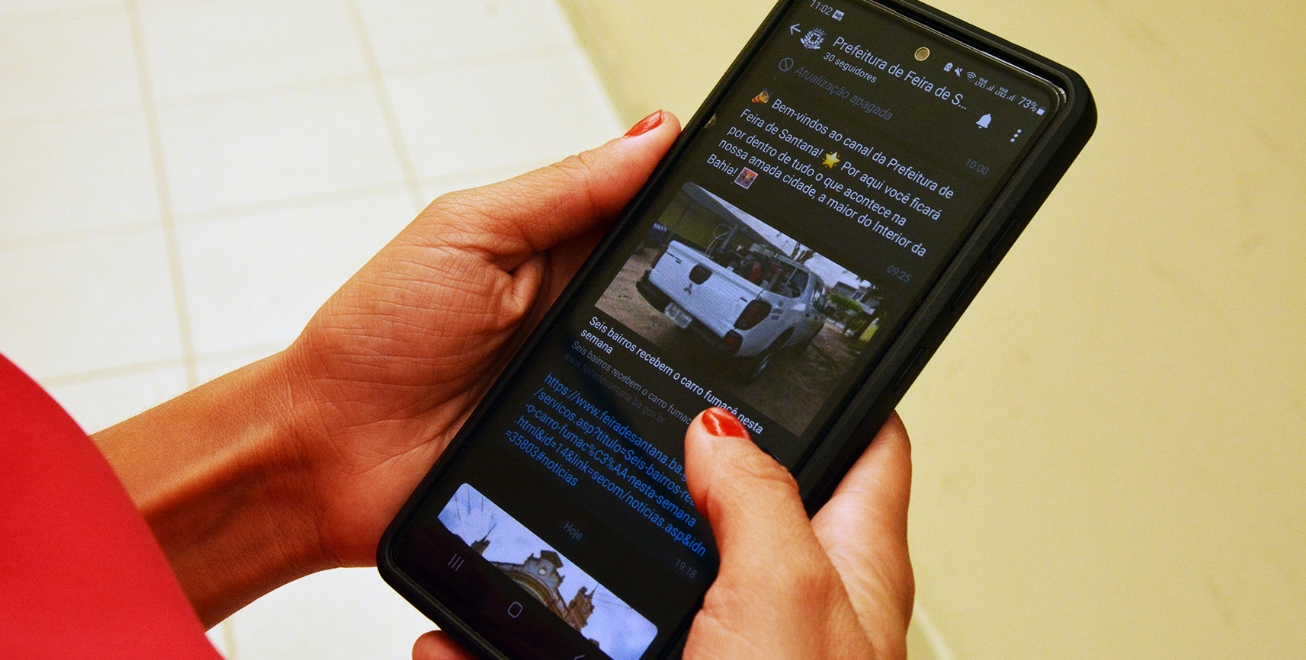 Pra ficar por dentro de tudo que rola no maior município do interior da Bahia, basta seguir no Whatsapp o canal oficial da Prefeitura de Feira de Santana. Lá são enviadas notícias, assuntos recentes e relevantes, além de conteúdos diversos.
