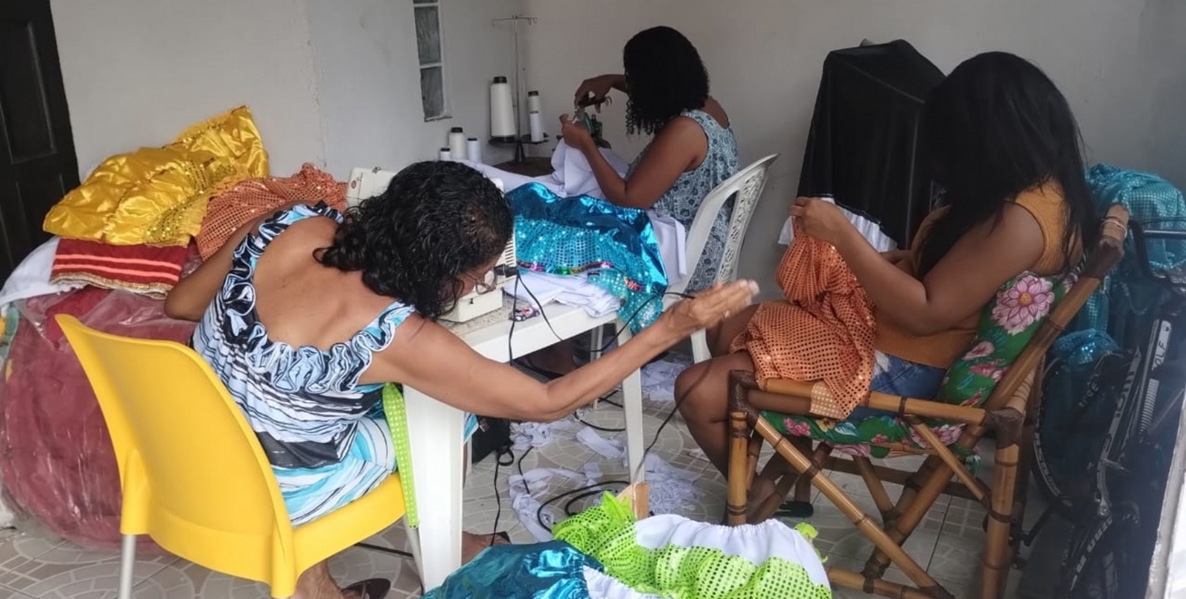 As peças são para os integrantes da escola de samba "Brasil Meu Samba" e dos afoxés "Filhos de Ogum" e "Filhos de Doguiã" - os três são da Rua Nova. São quase 260 vestimentas no total.